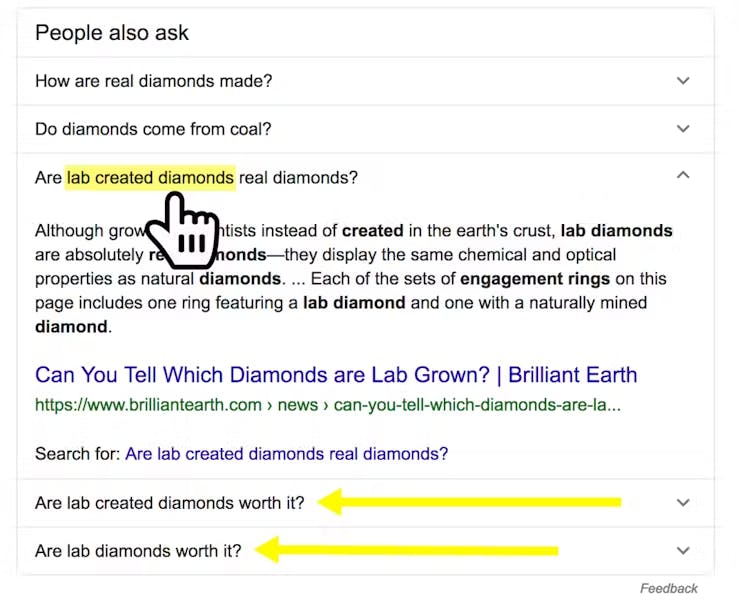The People Also Ask (PAA) section is another valuable resource for Google keyword research. These questions are Google's way of highlighting different aspects of your search topic.