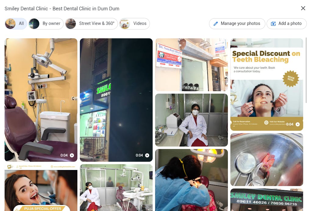 Upload high-quality photos of the clinic, staff, and equipment used within the healthcare centre. Make sure to also add interior, exterior, team, and treatment area images, and include short, engaging videos of the clinic. A virtual tour of your medical practice would also leave a positive impression on potential patients!